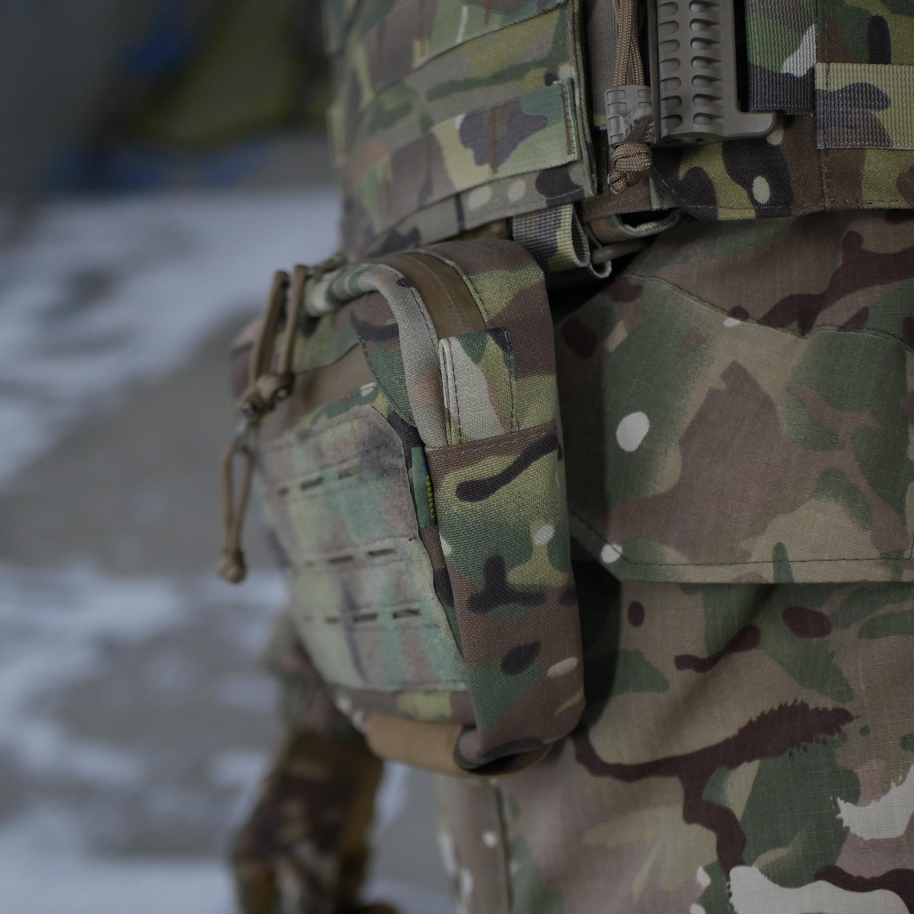 Кріплення на липучку дозволяє зручно закріпити підсумок до плитоноски або бронежилета у якій наявний велкро клапан.