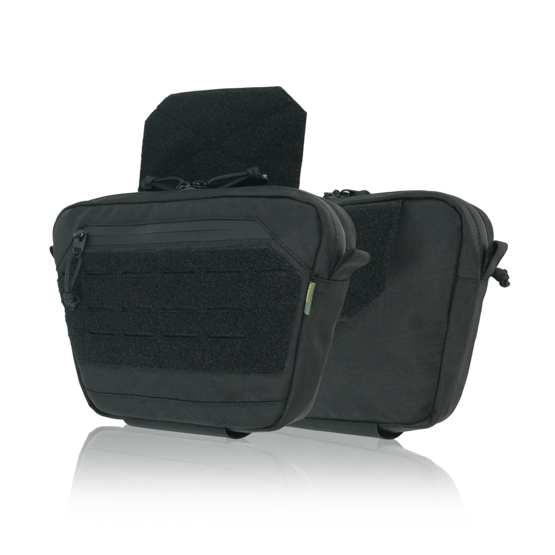 Сумка-напашник – функціональна сумка від компанії Kiborg, виготовлена з Cordura 1000D 380 г/м² з NIR-просоченням (менш помітна в приладах нічного бачення), подвійне поліуретанове покриття для захисту від вологи і мастильних матеріалів, не підтримує горіння, не стирається і не вигорає на сонці. Додатковий захист паховій частині при використанні м'якого балістичного пакету від компанії Militex.