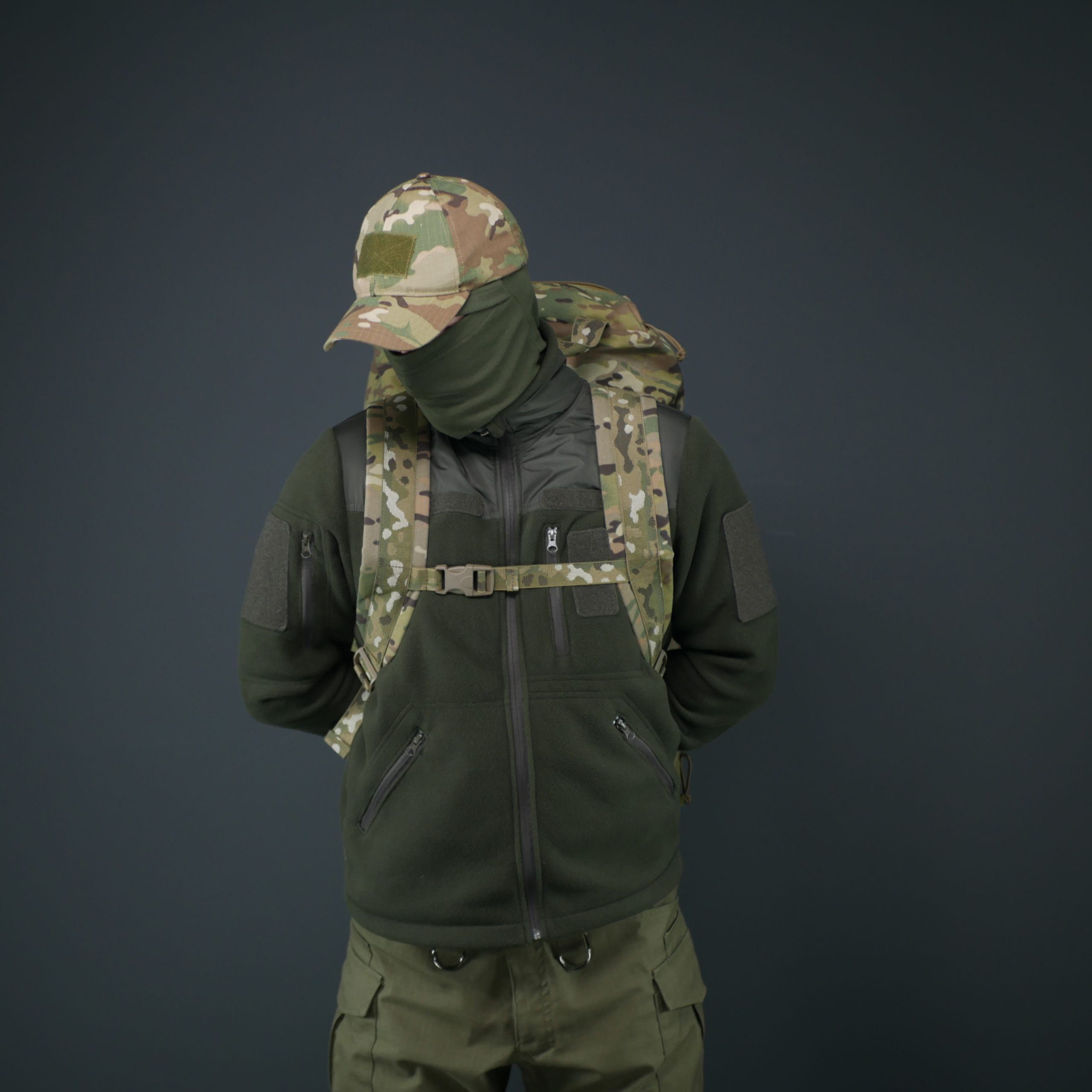 3 зовнішні кишені: 2 бокові — для фляг, набоїв, інструментів. 1 фронтальна — вмістить документи, планшет, карти.