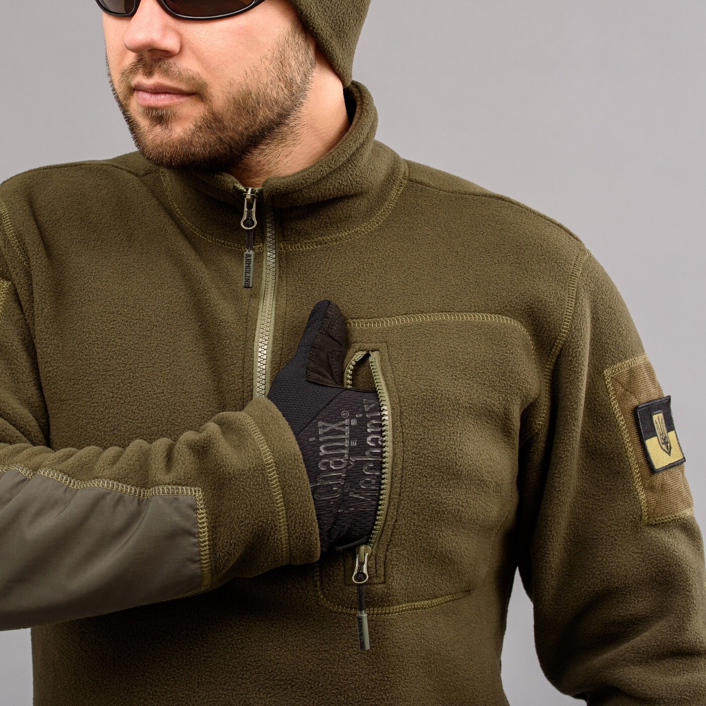 Толстовка флісова – пуловер, з шевроном.