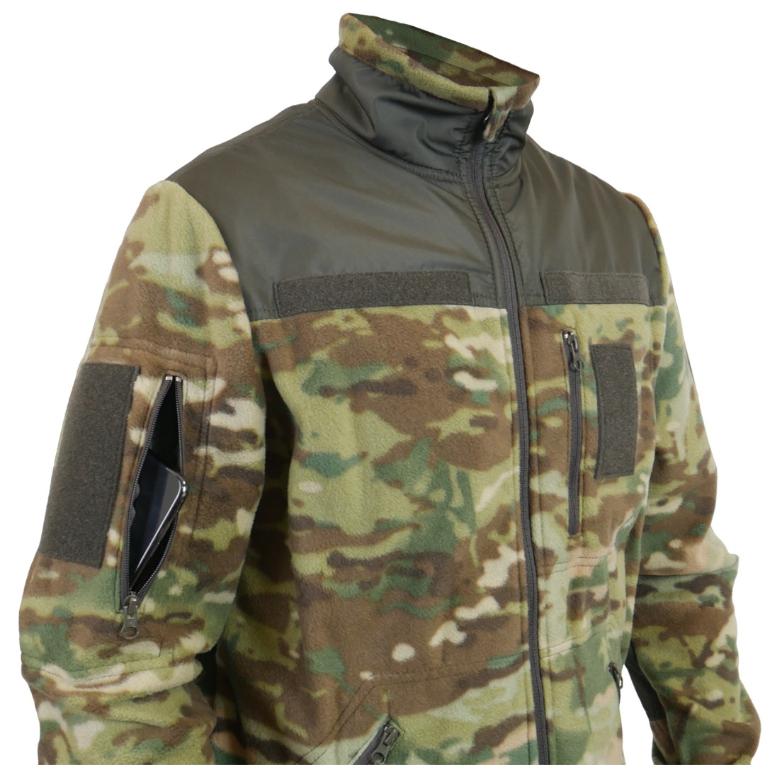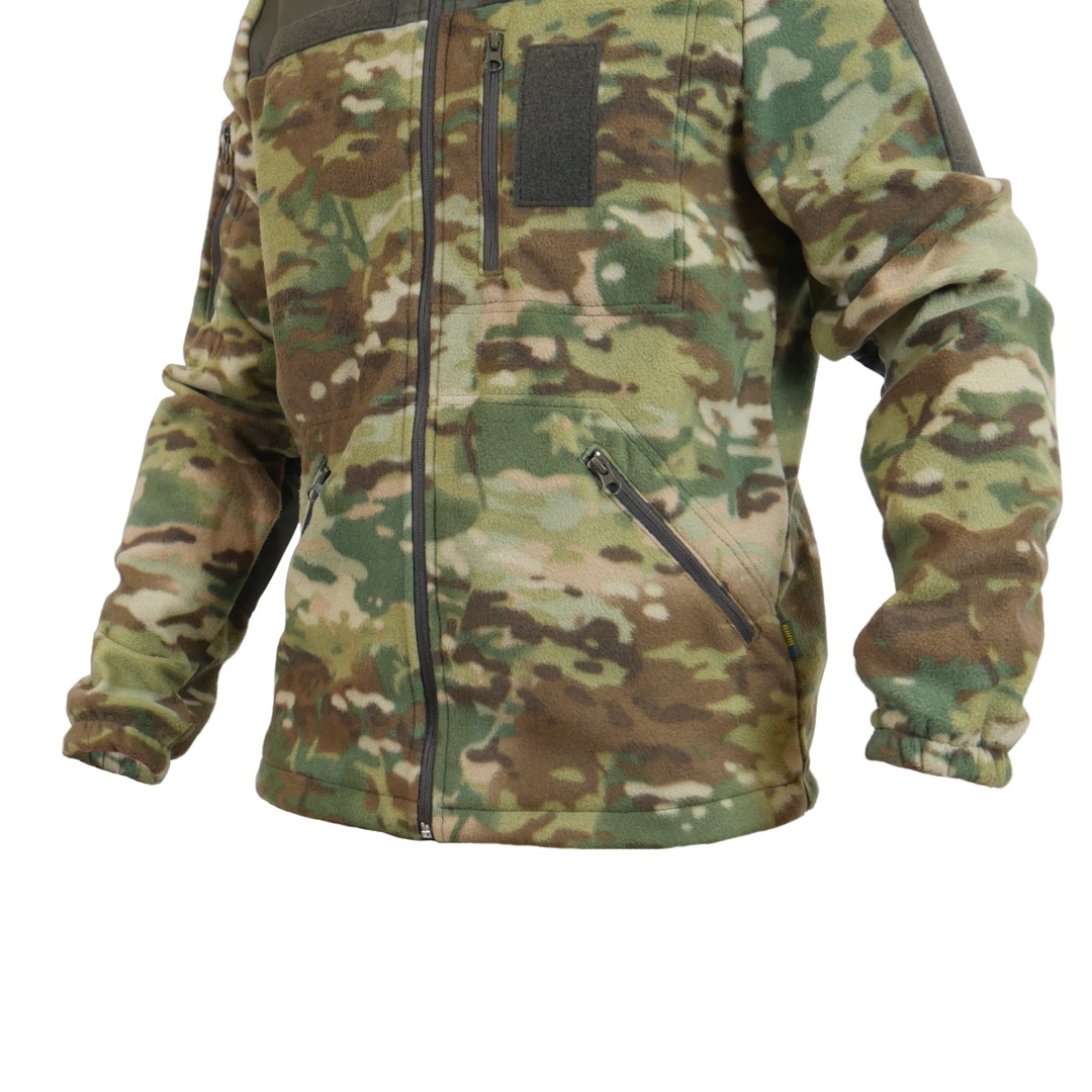 Військова кофта флісова мультикам Mod. 3 – легка та функціональна флісова кофта для польових умов і активного використання. Забезпечує комфорт, тепло та захист у будь-яких погодних умовах. Матеріал стійкий до зношування, не деформується, швидко сохне та зберігає тепло навіть у вологому стані.