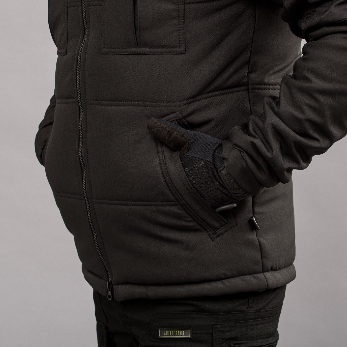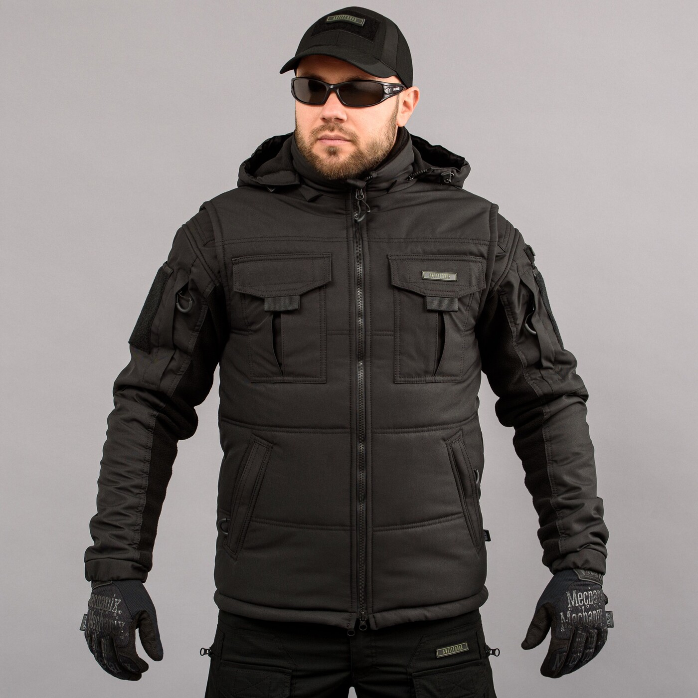 Жилетка утеплена, з капюшоном “ANTITERROR II” BLACK (Мембрана + Синтепон)