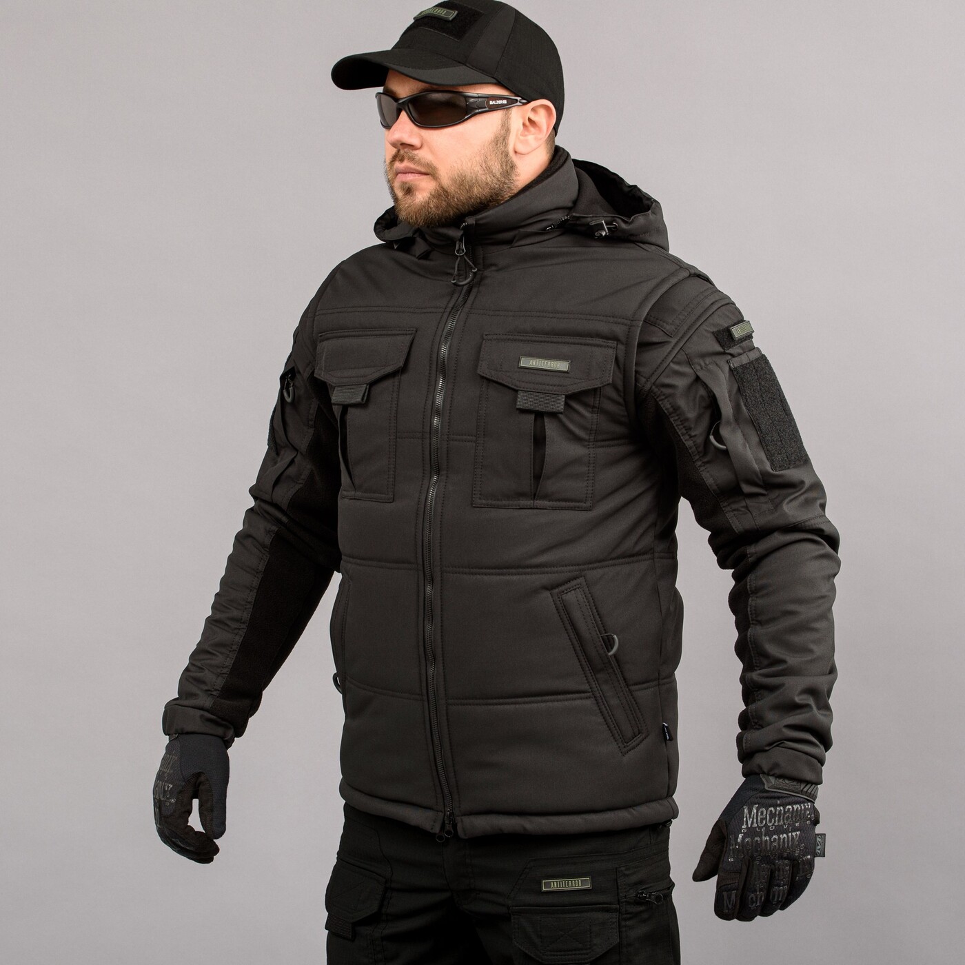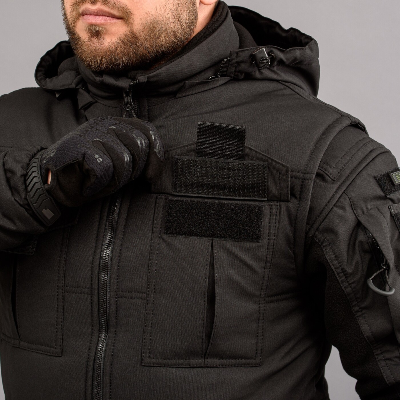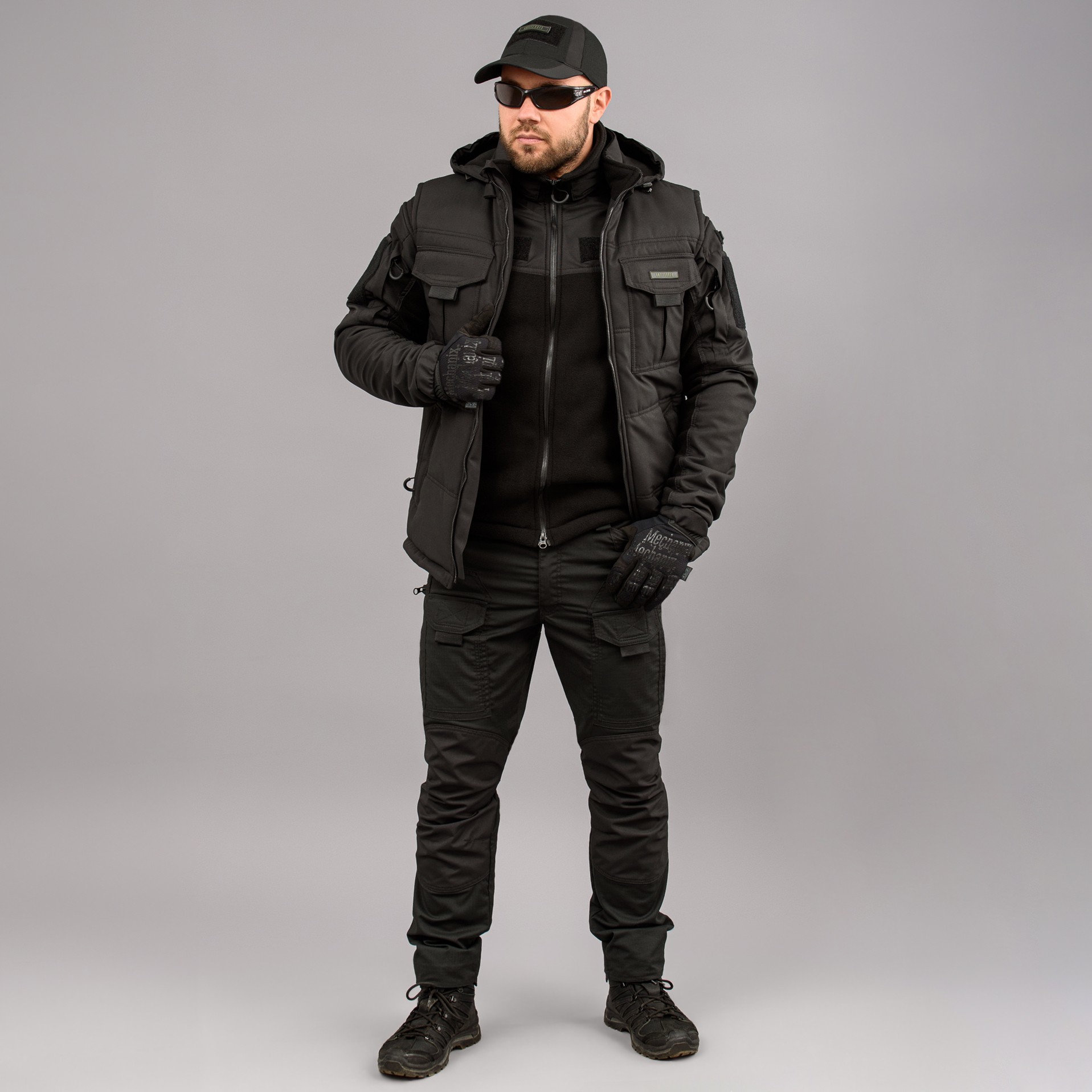 Жилетка – безрукавка з капюшоном, серія ANTITERROR II, в кольорі BLACK (чорний), мембранна водовідштовхувальна тканину.