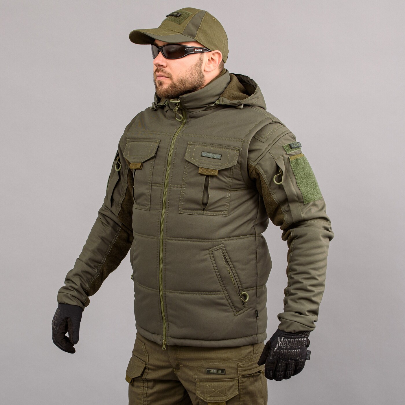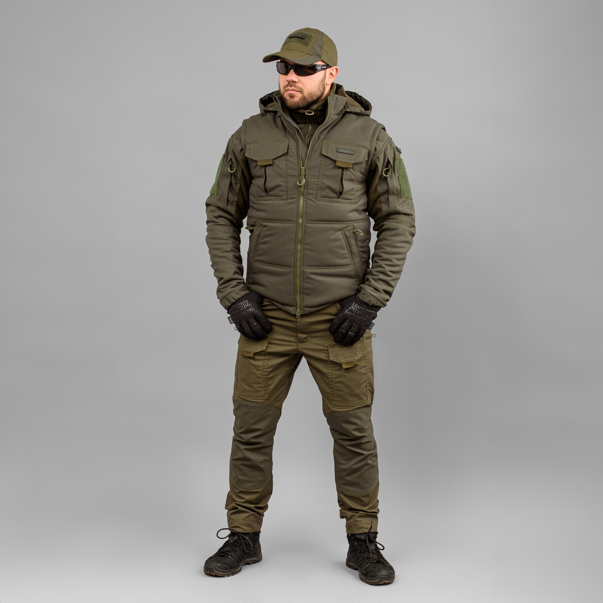 Жилетка – безрукавка з капюшоном, серія ANTITERROR II, в кольорі OLIVE (олива), мембранна водовідштовхувальна тканину.