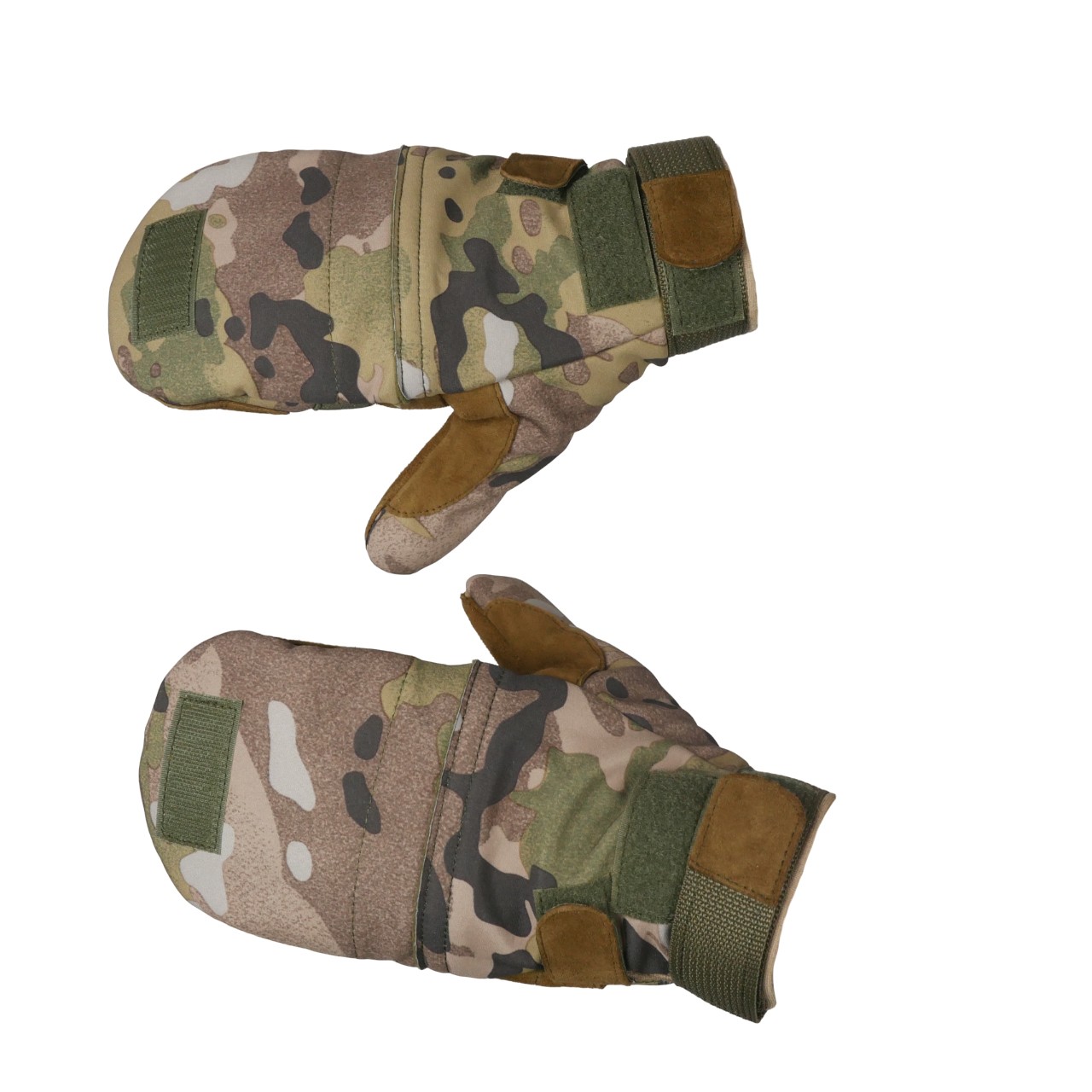 Зимові рукавиці мультикам Softshell – виготовлен з матеріалу Softshell 340 (мультикам), м’яка та теплозберігаюча флісова підкладка 280, долонна частина з натуральної замші для додаткового захисту і зносостійкості.
