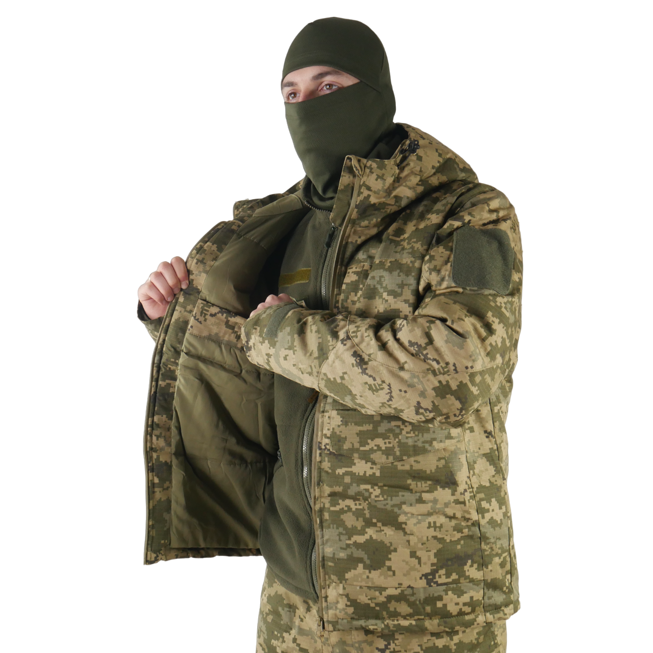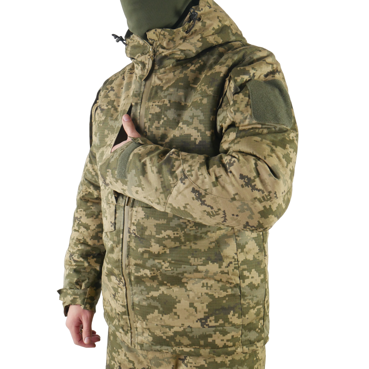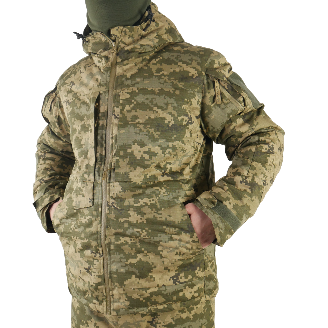 Зимовий костюм Series Піксель — ваш надійний супутник у найсуворіші зимові умови. Виготовлений із міцної тканини з водовідштовхувальним просоченням для надійного захисту від вітру та вологи. Оснащений утеплювачем ThermoLoft (200 г/м²), цей костюм гарантує вам комфорт і тепло навіть при температурі до -30°C.