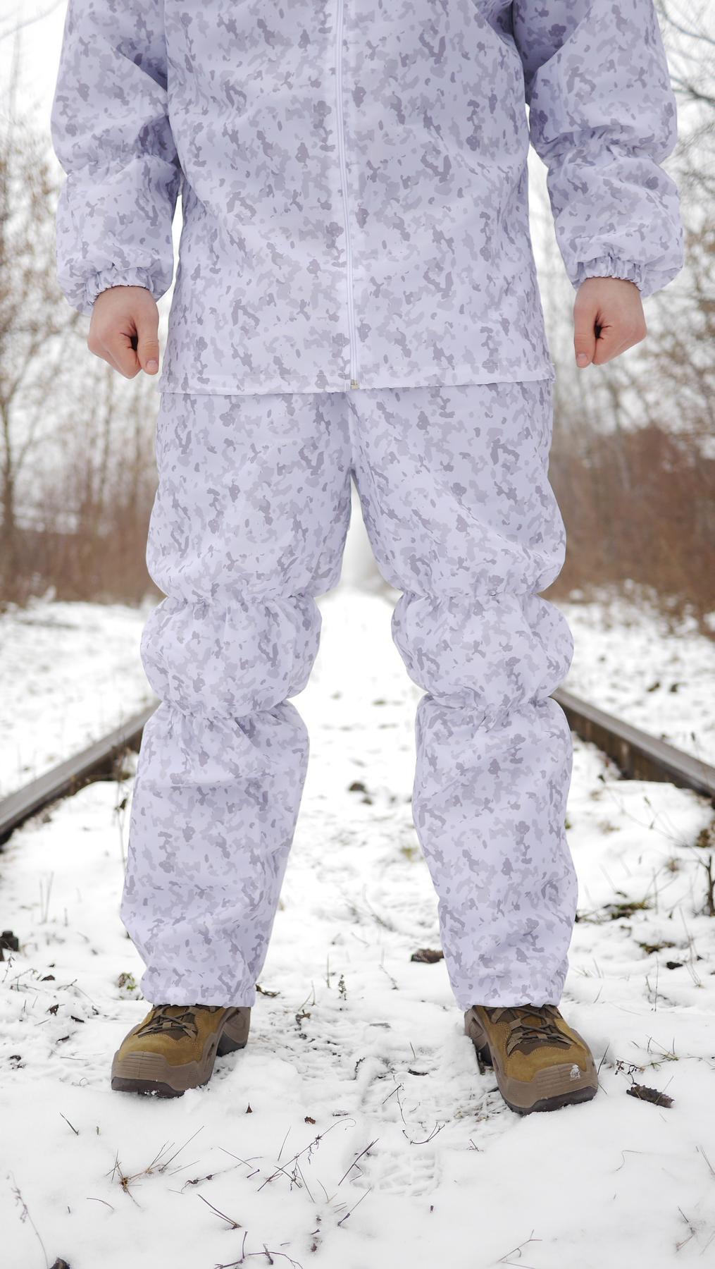 - Штани, пояс і манжети регулюються шнурками із затяжками, додаткова широка резинка в зоні колін для щільного прилягання.