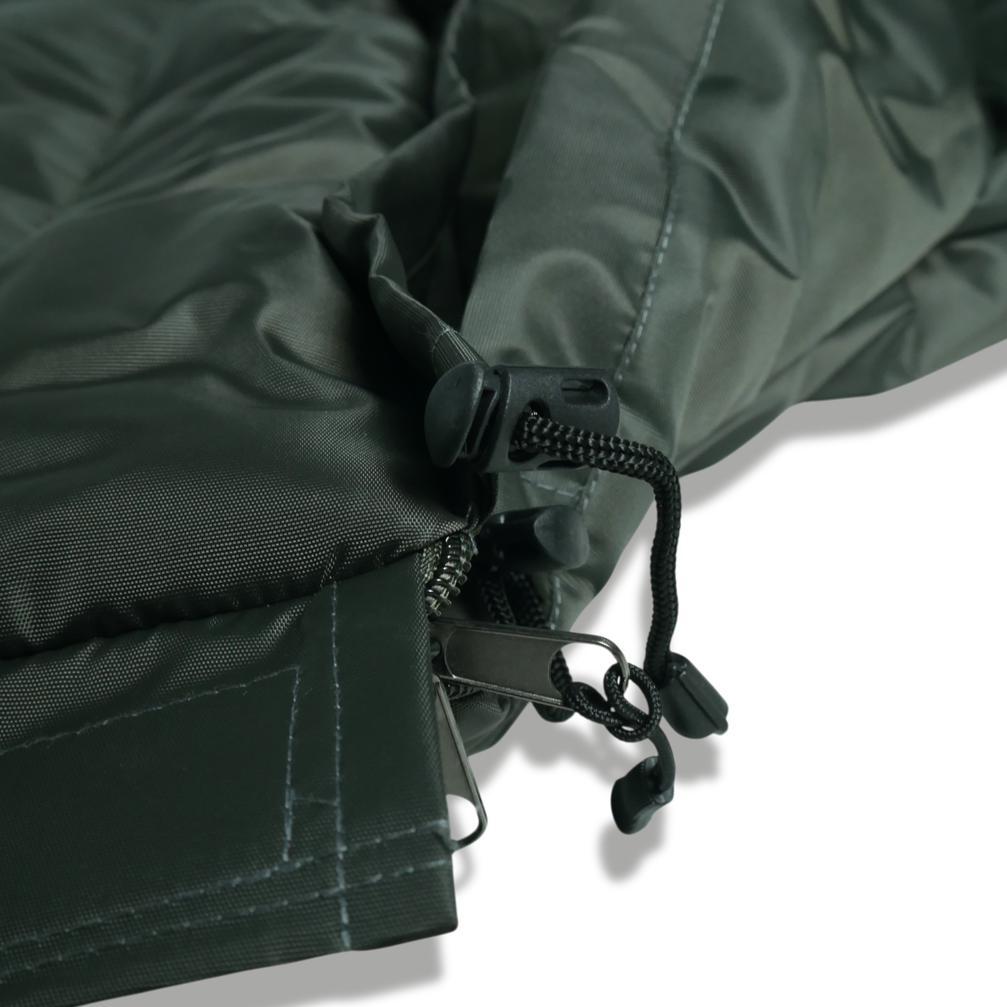 Дизайн: Зовні спальний мішок виконаний у кольорі Олива, в той час як внутрішня сторона виконана в сірому кольорі, створюючи приємну атмосферу комфорту.